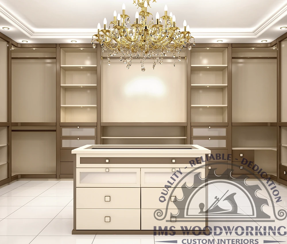 Our custom walk-in closets transform your daily life with elegance and sophistication, providing a luxurious and organized living experience.